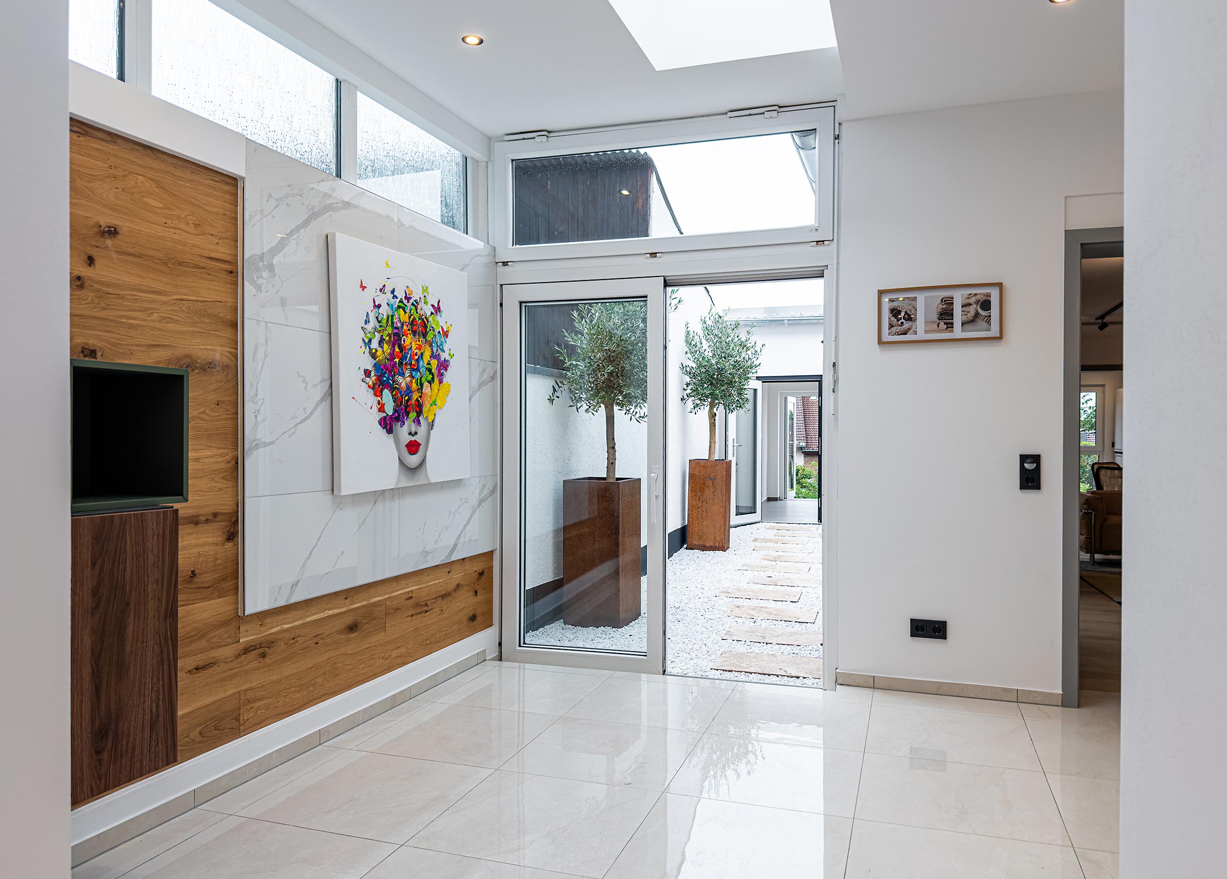 Das Haus bietet offene und lichtdurchflutete Räume. Jeder Bereich wurde so konzipiert, dass er Funktionalität und Ästhetik harmonisch vereint – für ein Wohngefühl, das ebenso Freiheit und Geborgenheit vermittelt.
